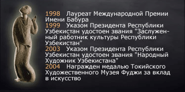 В Ташкенте возведены его скульптурные портреты Гафура Гуляма и Бируни, Кадыри и Каххара. А в прошлом году столицу украсила замечательная статуя Зульфии.